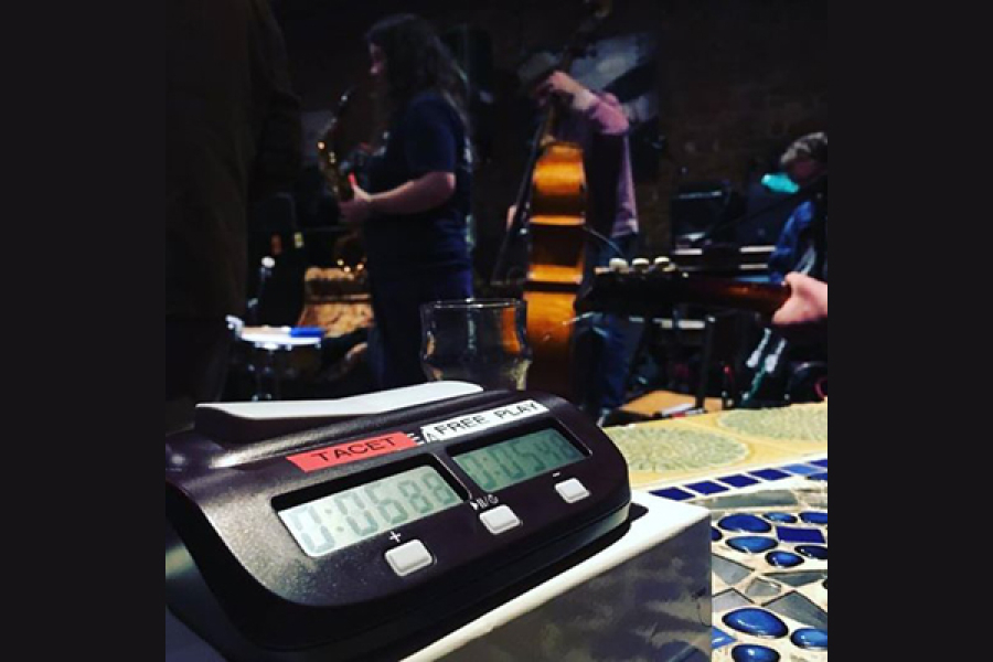 Mechanical chess clocks are required to facilitate the aim of the system. One of the pair of dials is called ‘tacet’ and the other ‘free play’.See image above. Each performer has an individual chess clock to monitor and manage their contribution. The performer plays when the ‘free play’ dial is running down and is silent when the ‘tacet’ dial is running down.