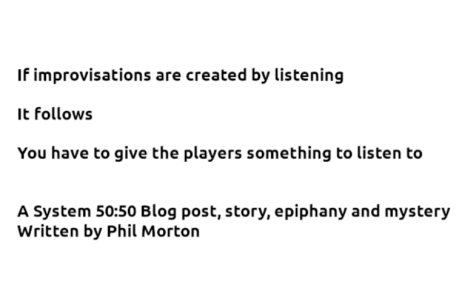 Phil Morton's big takeaway from the productive and rewarding inaugural Ensemble 50:50 Ceredigion session in Aberystwyth was, wait for it: `If free ensemble improvisations are not created, and they generate themselves from the act of listening (T Nunn)` Then Phil Morton writes `You have to give the musicians, the improvisers something to listen to.`