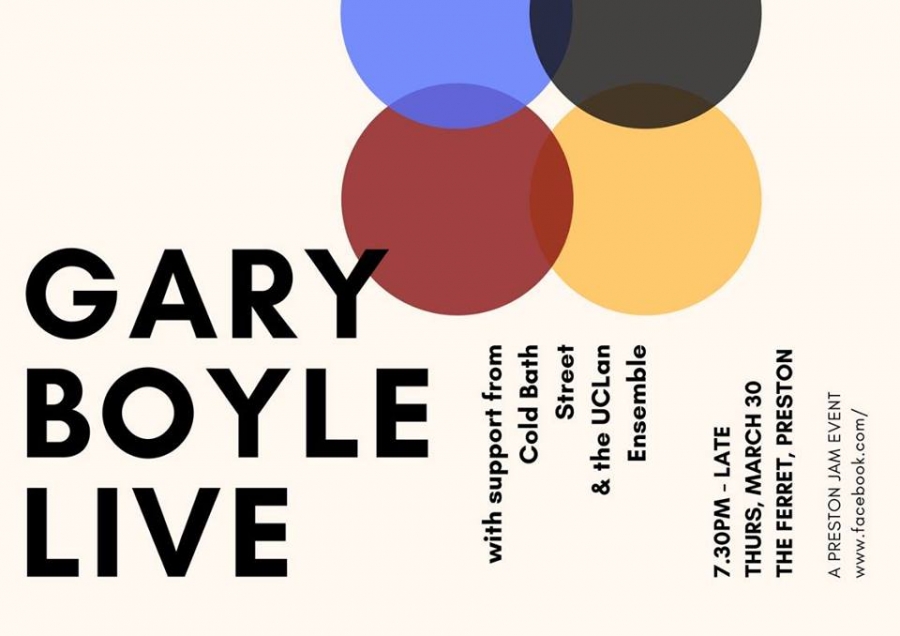 Supporting Gary Boyle is Cold Bath Street, a raging five piece that builds mind-blowing music from small phrases, moving effortlessly between genres: not to be missed!